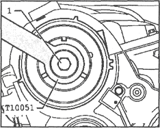 5 Снимите ступицу с распределительного вала при помощи специального съемника (см. сопр. иллюстрацию).